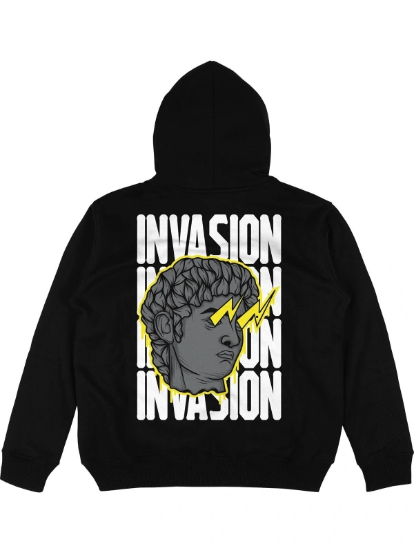Invasion Siyah Oversize Unisex Kapüşonlu Sweatshirt Hoodie