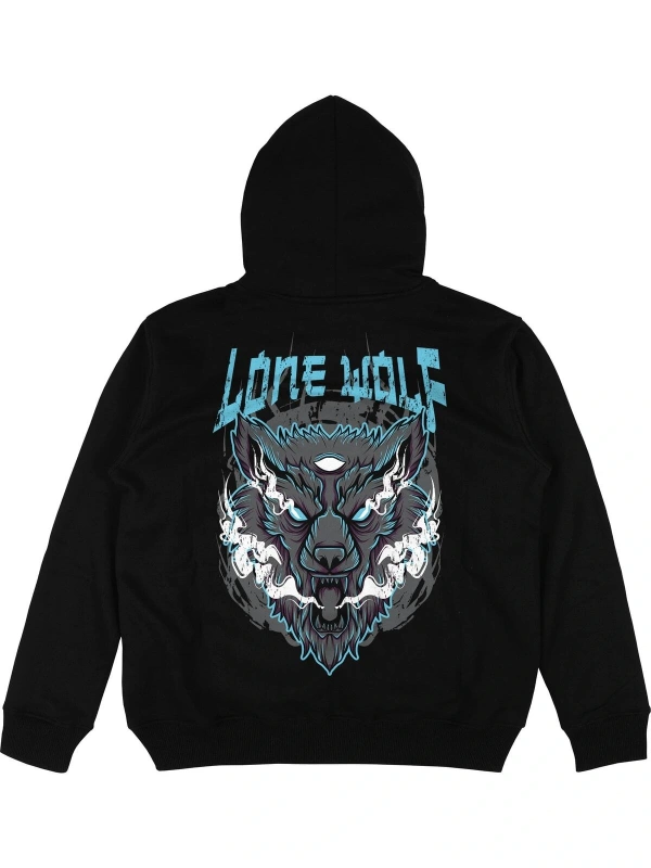 Lone Wolf Siyah Oversize Unisex Kapüşonlu Sweatshirt Hoodie