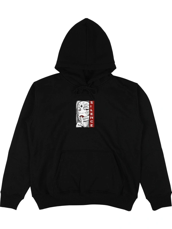 Silence Siyah Oversize Unisex Kapüşonlu Sweatshirt Hoodie