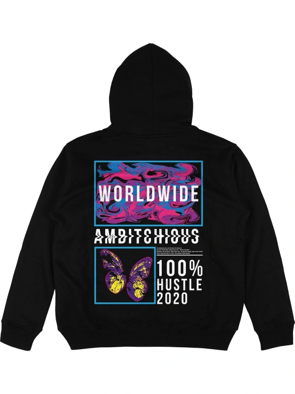 Worldwide Siyah Oversize Unisex Kapüşonlu Sweatshirt Hoodie