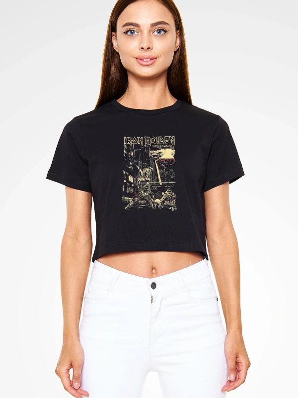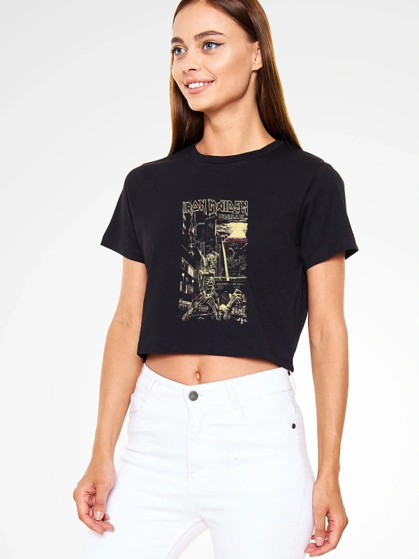 Iron Maiden Siyah Crop Top Tişört