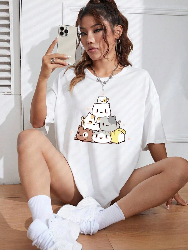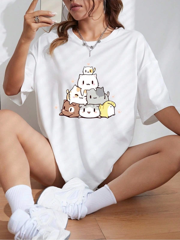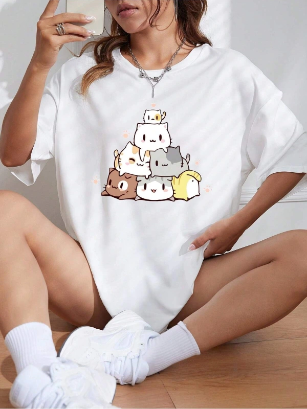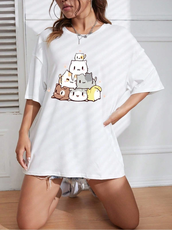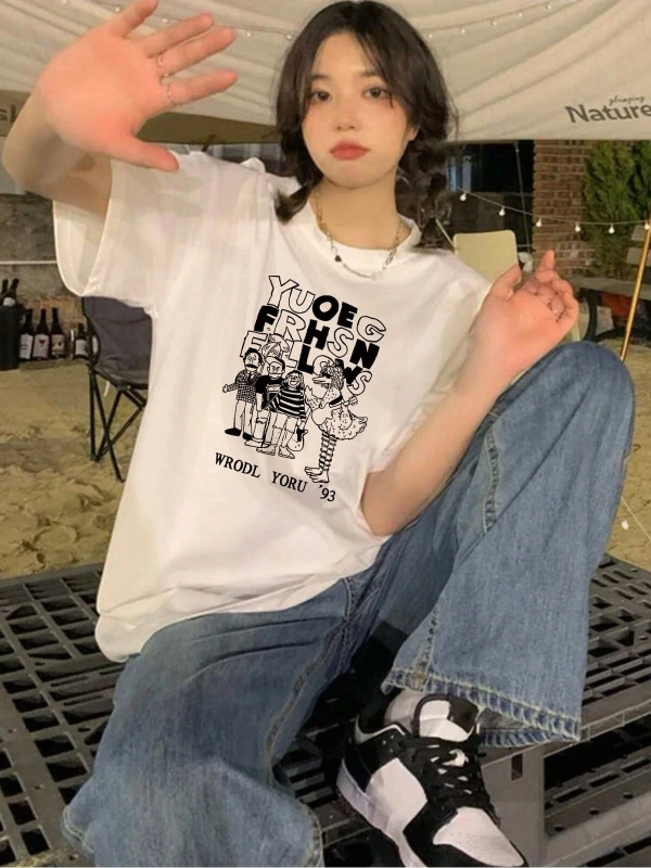 Karikatür ve Grafik tasarım Oversize T-shirt Cartoon/Letter serisi kod506