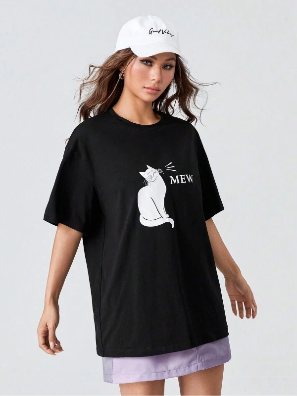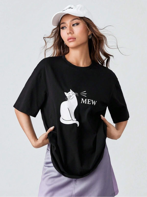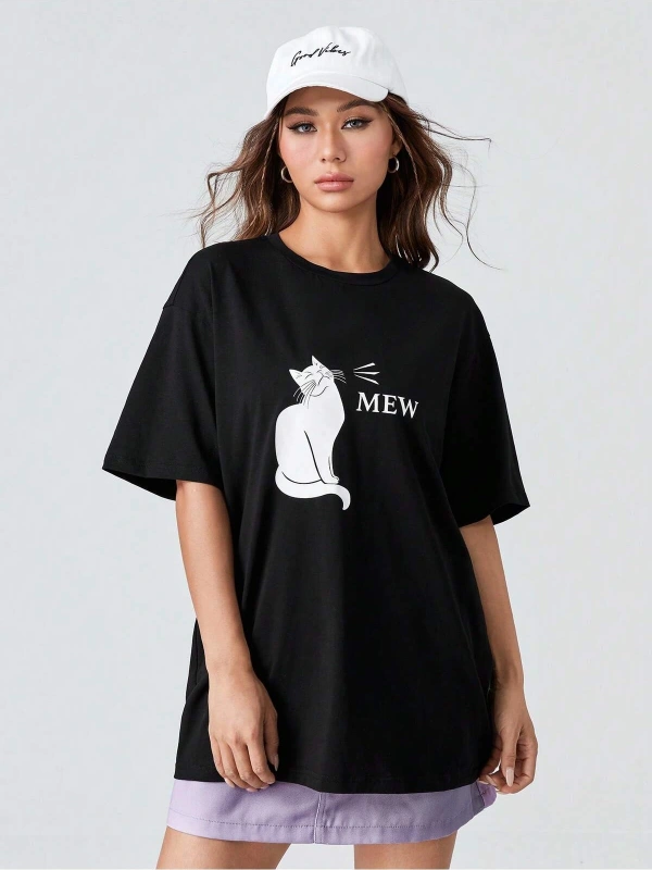 Karikatür ve Grafik tasarım Oversize T-shirt Cartoon/Letter serisi kod859