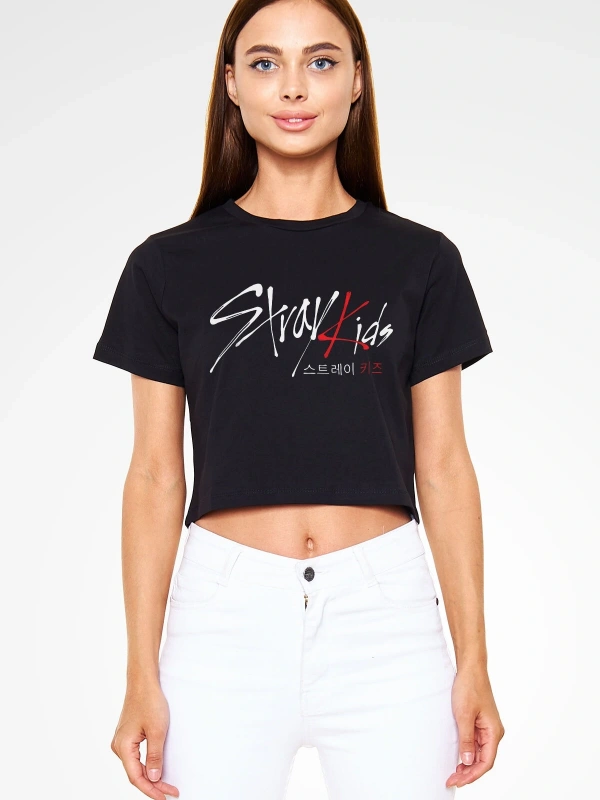 Stray Kids K-pop Siyah Crop Top Tişört
