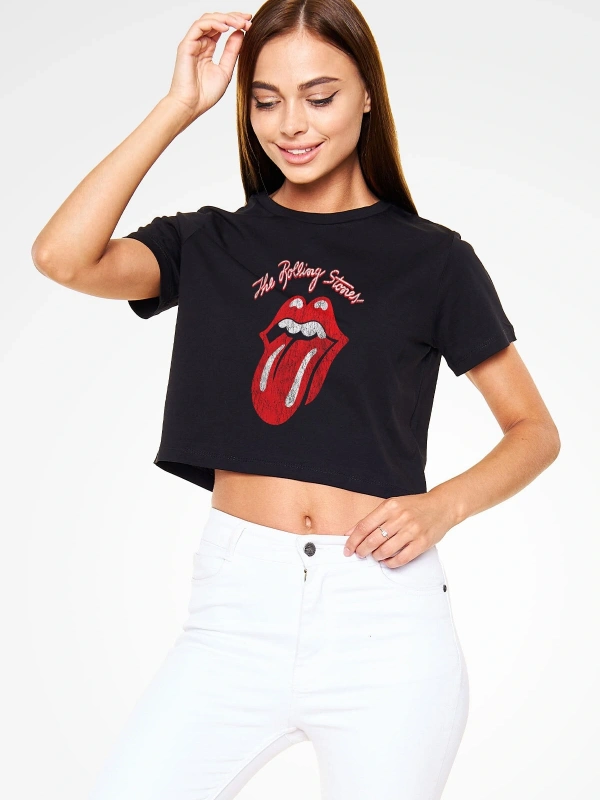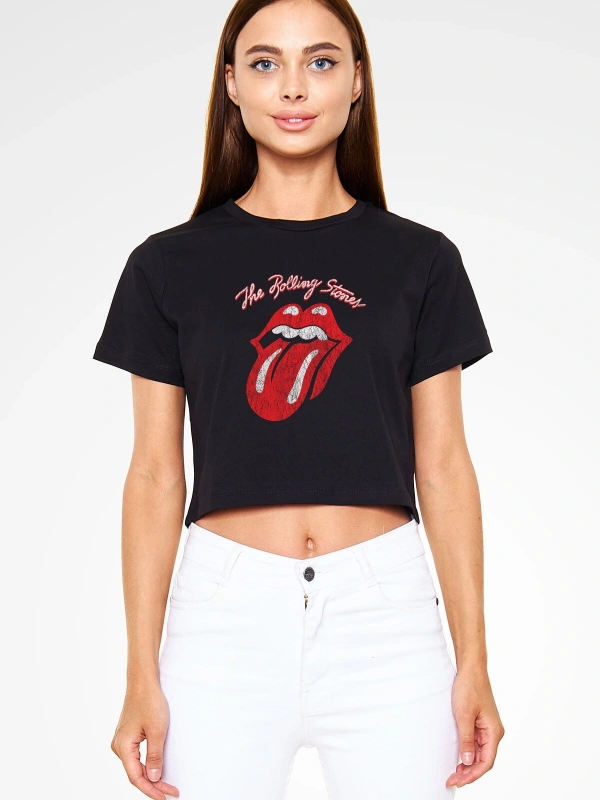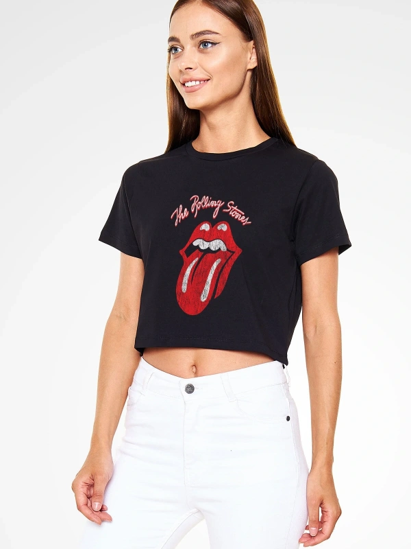 The Rolling Stones Logo Siyah Crop Top Tişört