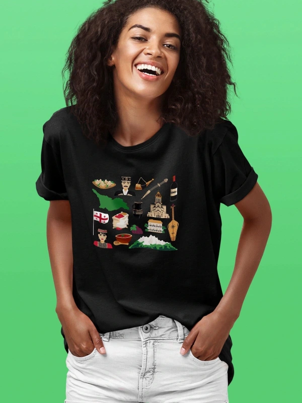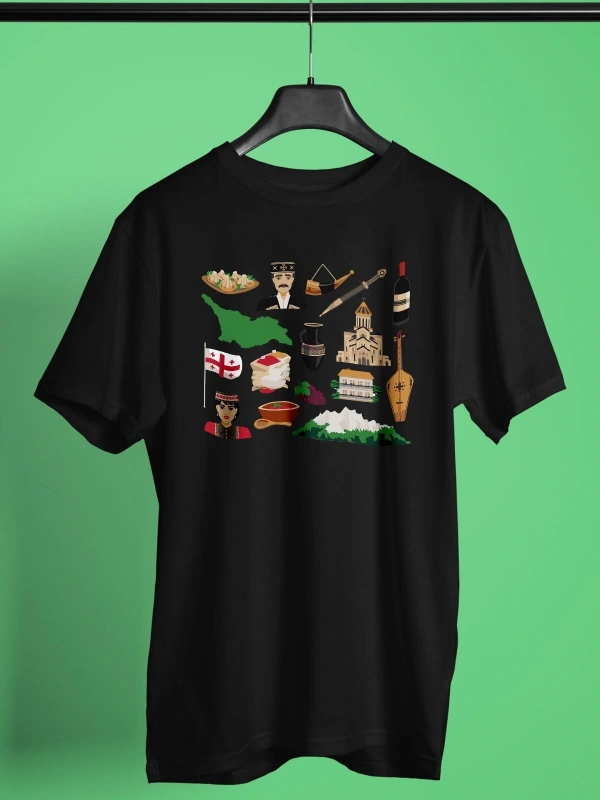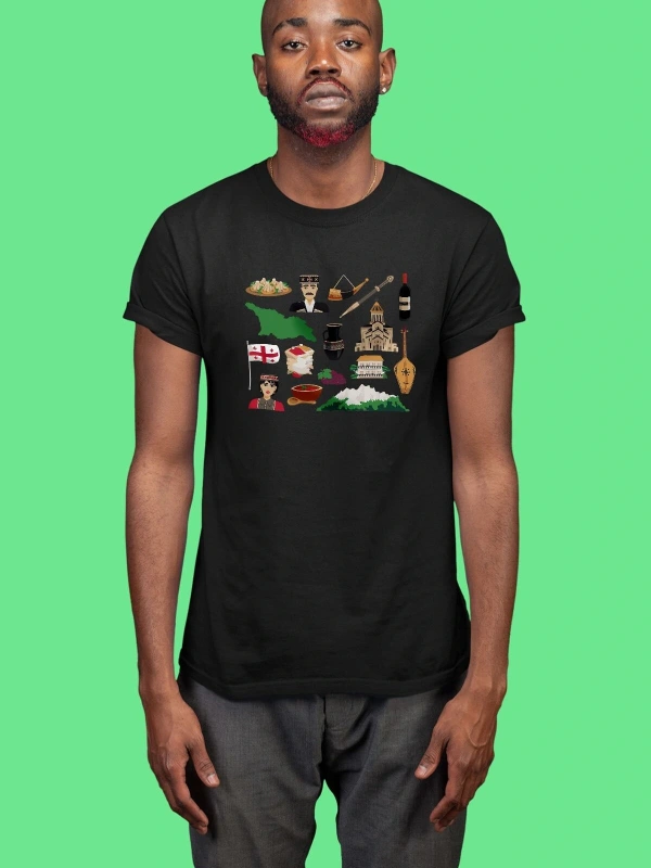 Ko Buta Gürcistan Baskılı Unisex Siyah Tişört To17457