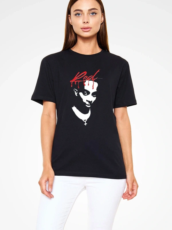 Ko Buta Playboi Carti Baskılı Unisex Siyah Tişört - Tshirt T57409