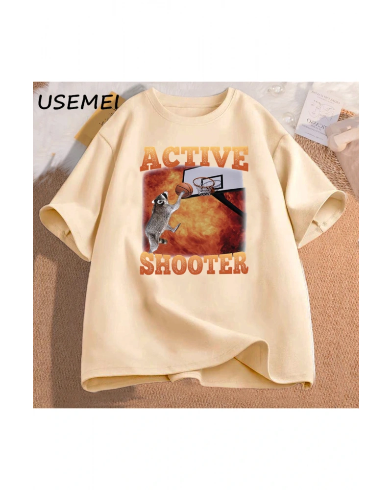 Aktif atıcı komik basketbol rakun Meme T Shirt pamuk kısa kollu grafik tişörtleri Unisex Stre