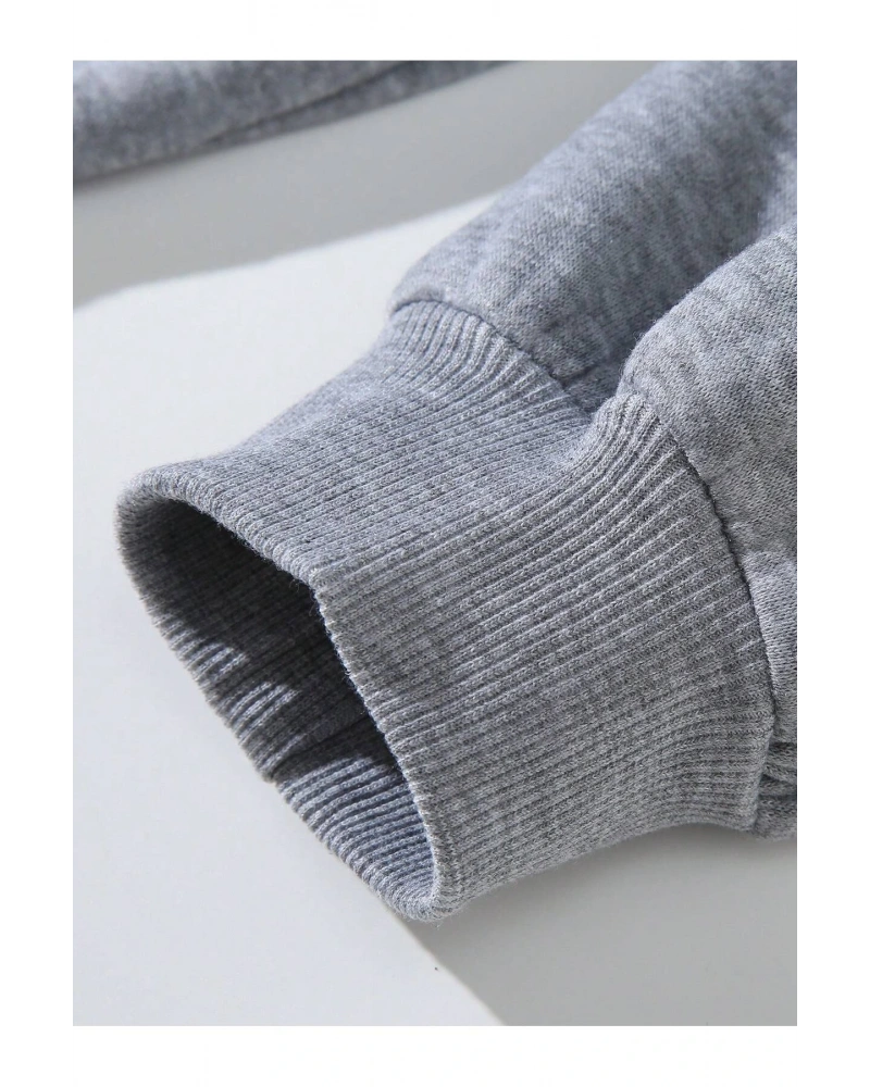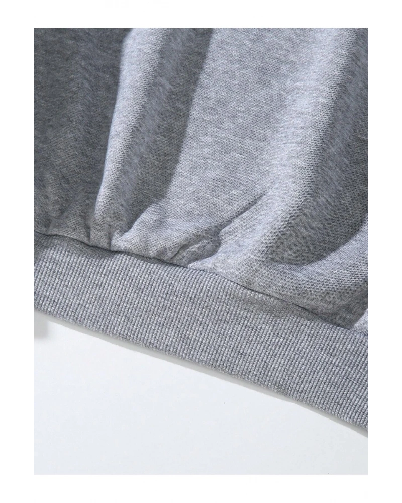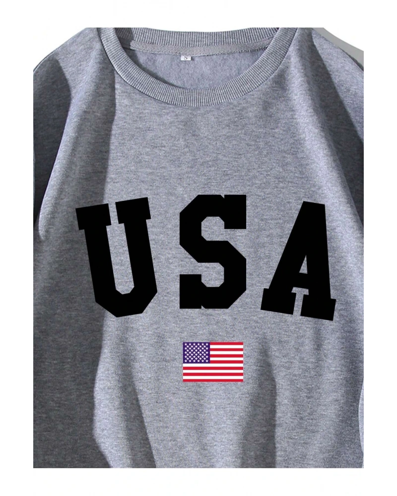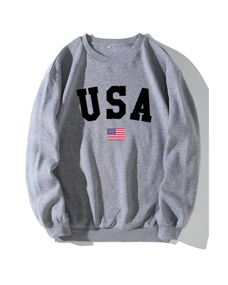 American Flag & Letter Graphic Lined Sweatshirt Gri