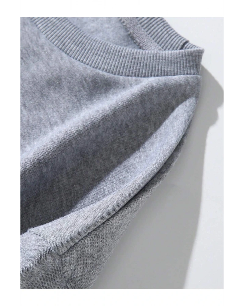 Siyah Yakasız Tüy Baskılı Unisex Sweatshirt