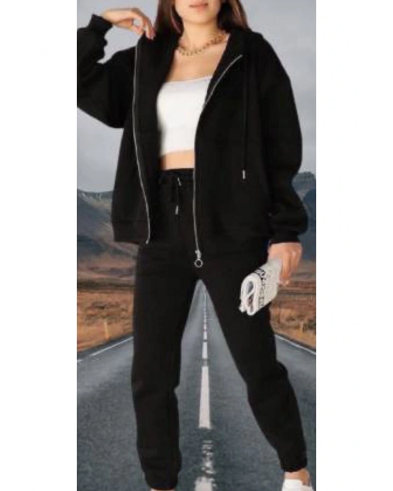 Amor Woman Kapüşonlu Tam Fermuarlı 4 Iplik Çok Kalın Yeni Stil Oversize Kadın Kışlık Eşofman Takımı