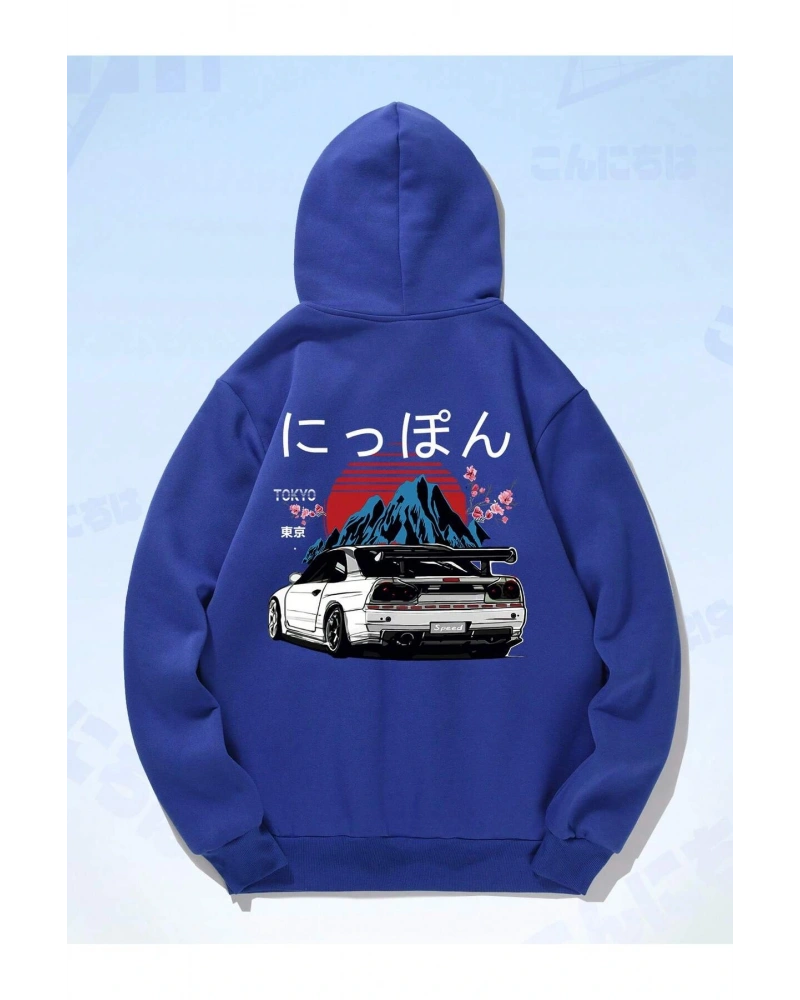 YQYQ----Oversize Araba Nissan Tasarım Baskılı Kapüşonlu Sweatshirt Hoodie Beyaz