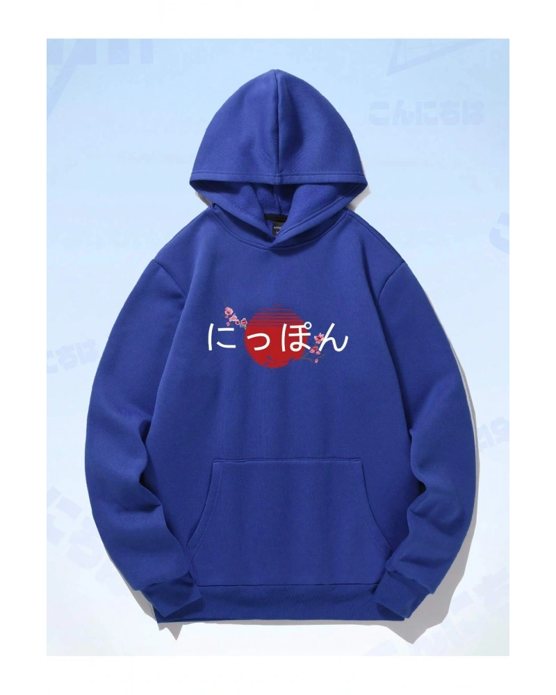 Anime Guys Japanese Letter Graphic Kangaroo Pocket Hoodie MAVİRENK