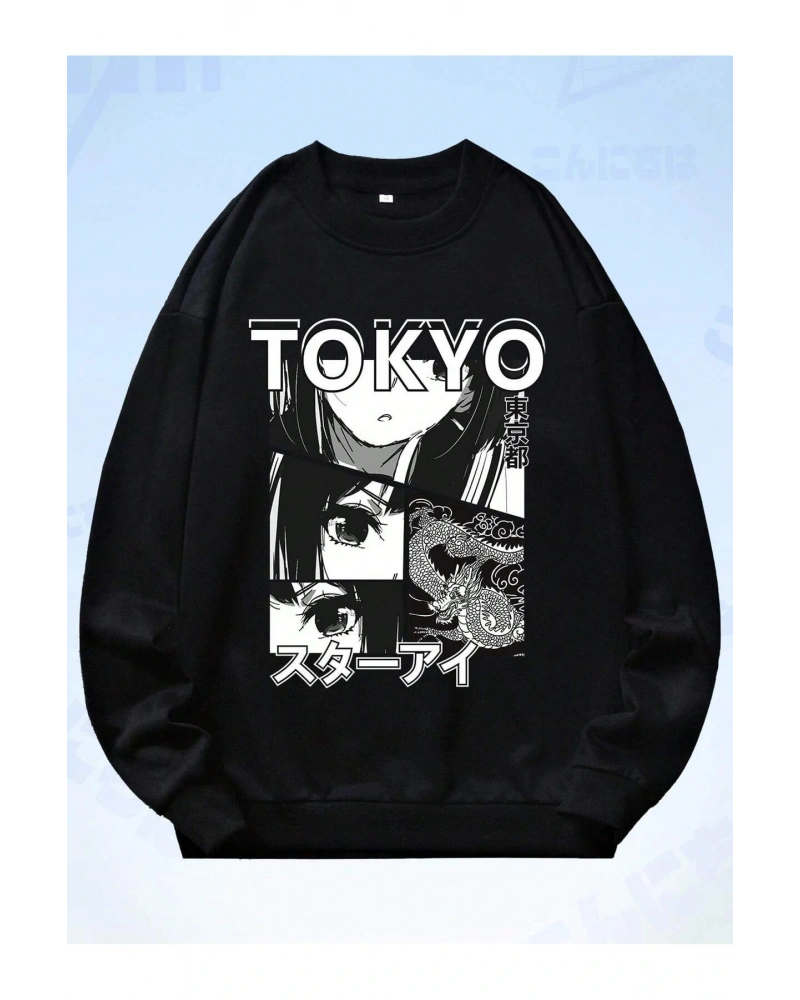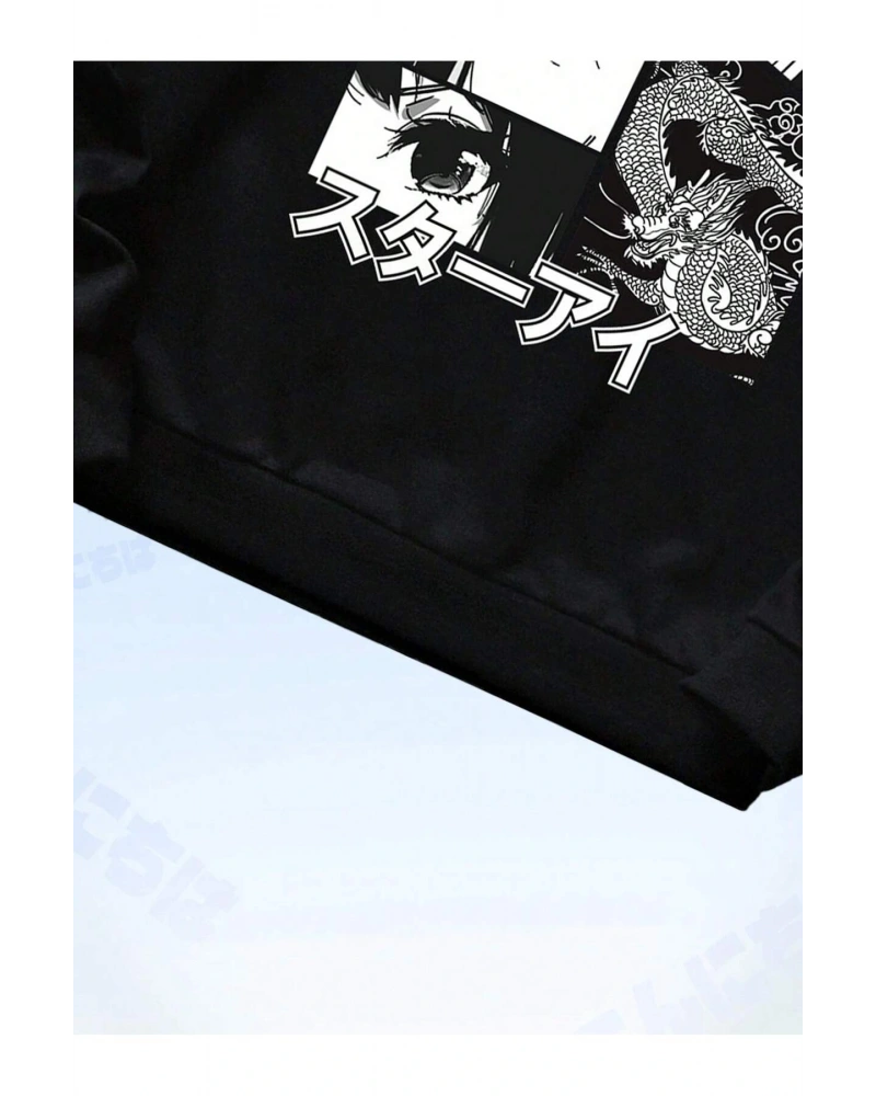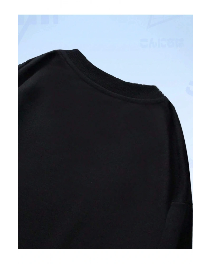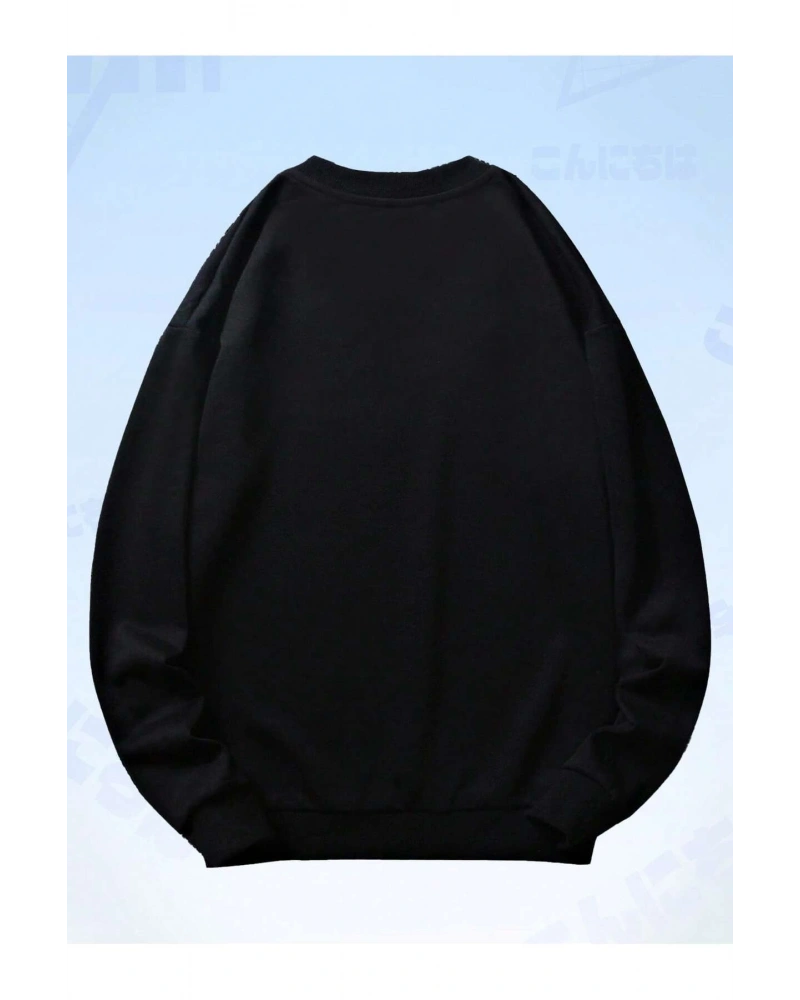 Anime Guys Letter Figure Graphic Sweatshirt Siyah