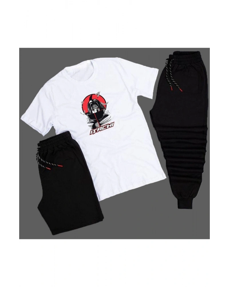 Anime Itachi Yazı Detaylı Baskılı Unisex Yazlık Şort - Normal Kalıp Tişört - Eşofman