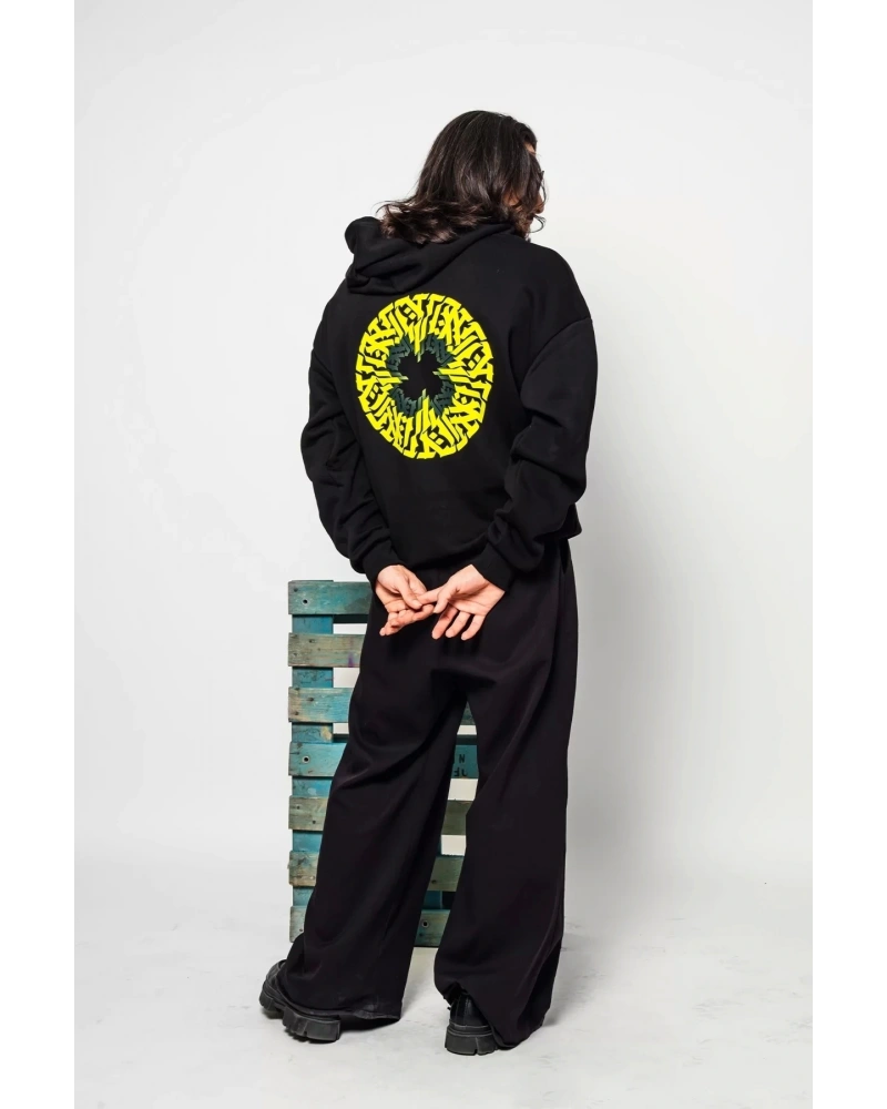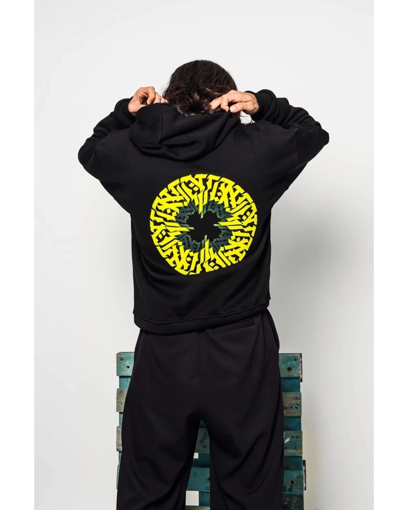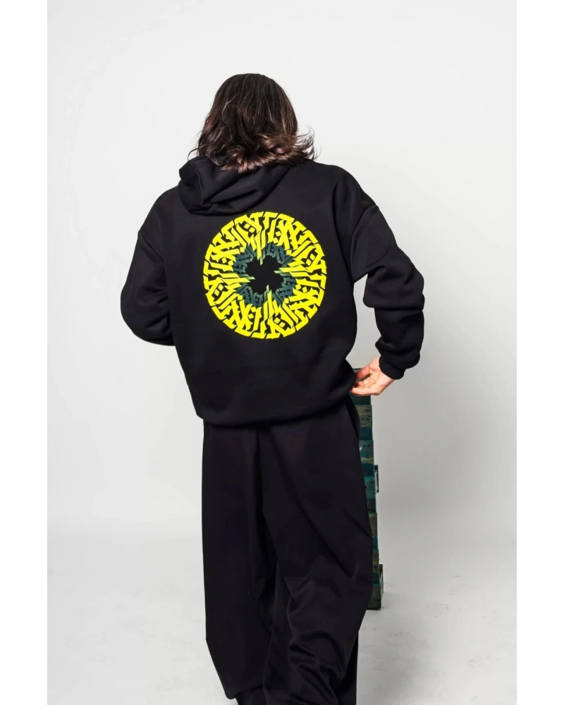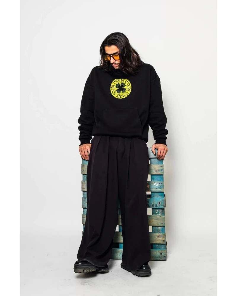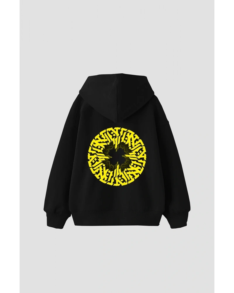 Oversize Unisex Siyah Yaşam Çiçeği Hoodie