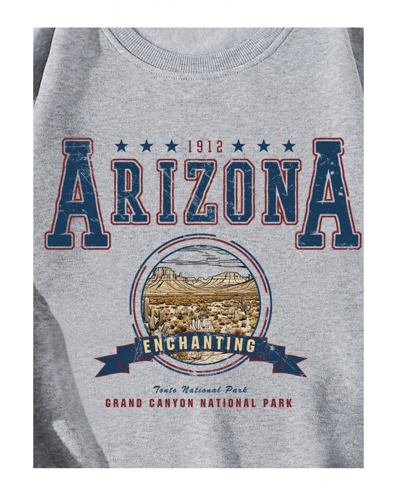 Arizona Baskılı Üç İplik Unisex Oversize Sweatshirt Gri