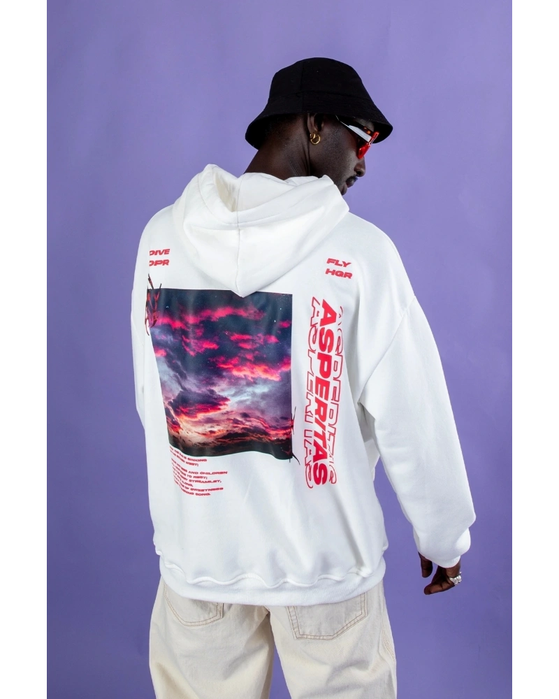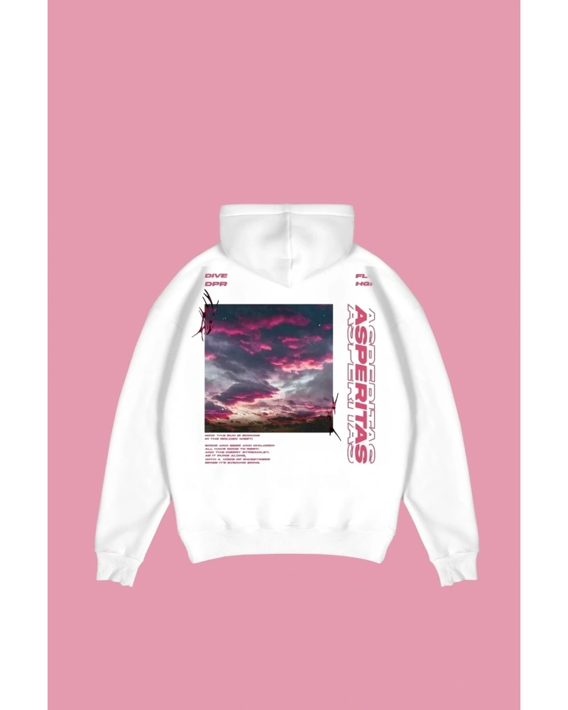 Asperitas Sırt Baskılı Oversize Unisex Beyaz