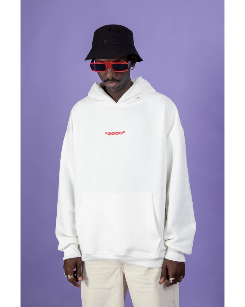 YQYQ----Oversize Araba Nissan Tasarım Baskılı Kapüşonlu Sweatshirt Hoodie Beyaz