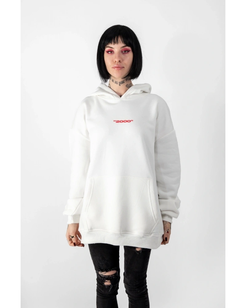 YQYQ----Oversize Mor Saçlı Lila Genç Kız Tasarım Baskılı Unisex Kapüşonlu Sweatshirt Hoodie Beyaz