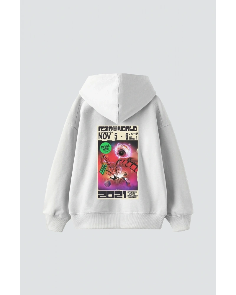 AstroWorld Baskılı Oversize Unisex Beyaz