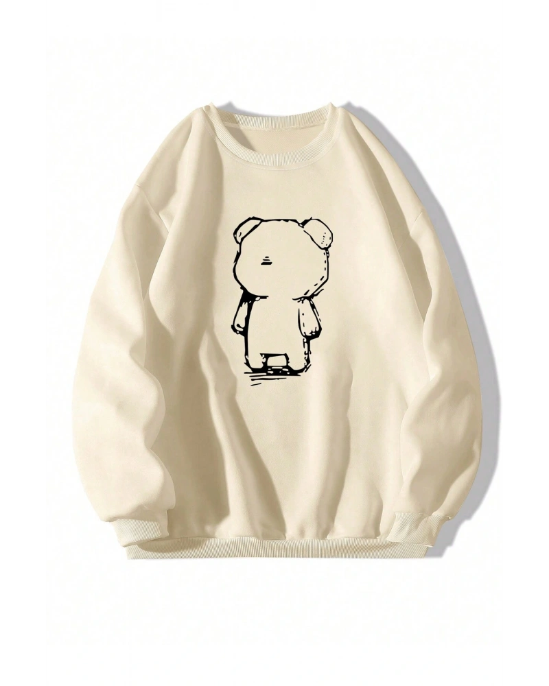 Ayı Desenli Düşük Omuz Büyük Beden Sweat Bej