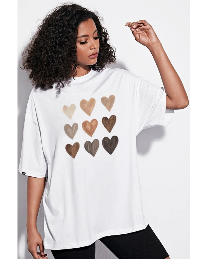Yasolin----Kadın Yüz Baskı Detaylı Oversize T-shirt