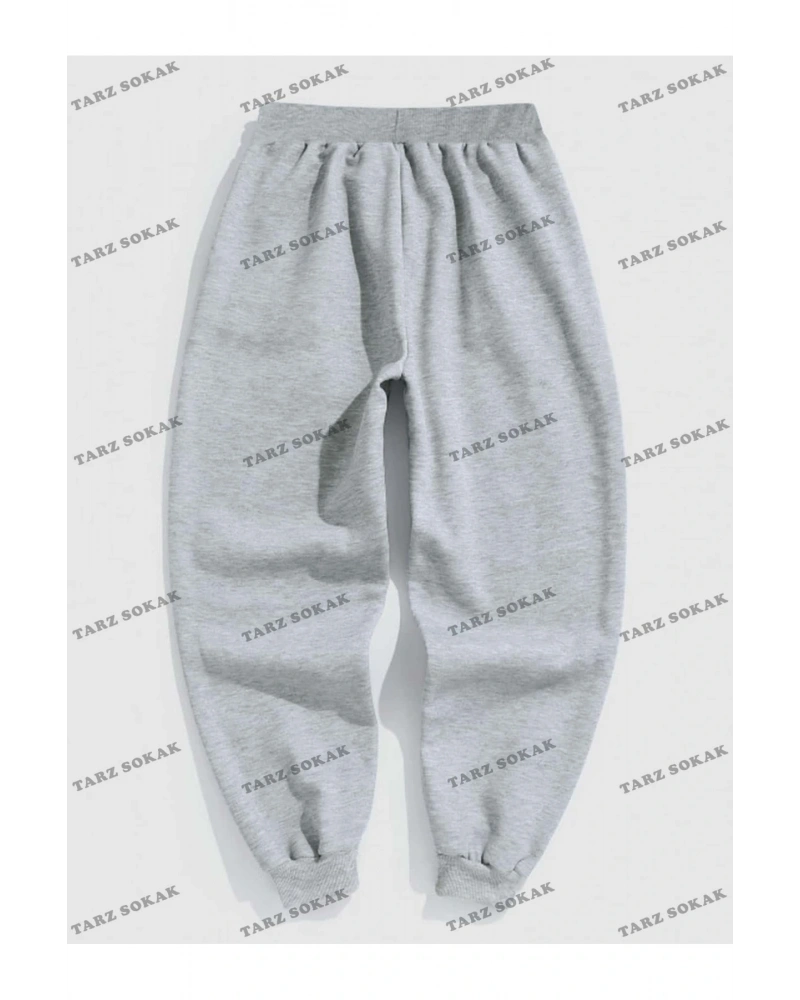 Erkek Yazlık Eşofman Altı Dar Paça Jogger Gri Pamuklu RLX044513
