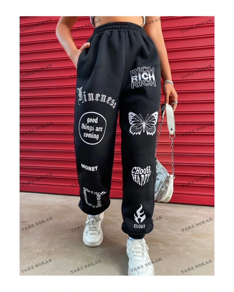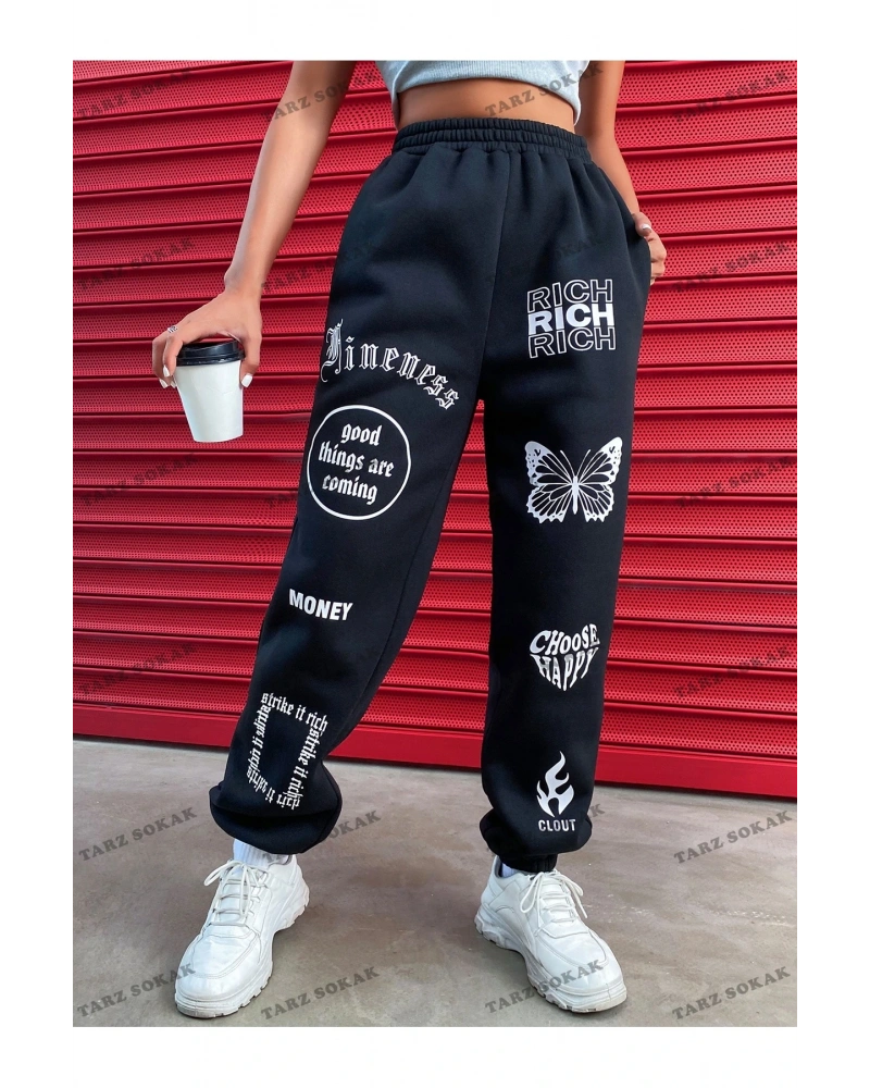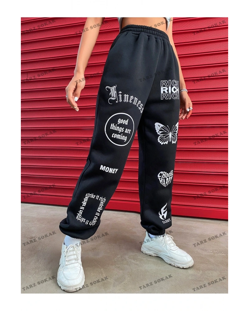 Letter Graphic Thermal Lined 4 Mevsim Eşofman