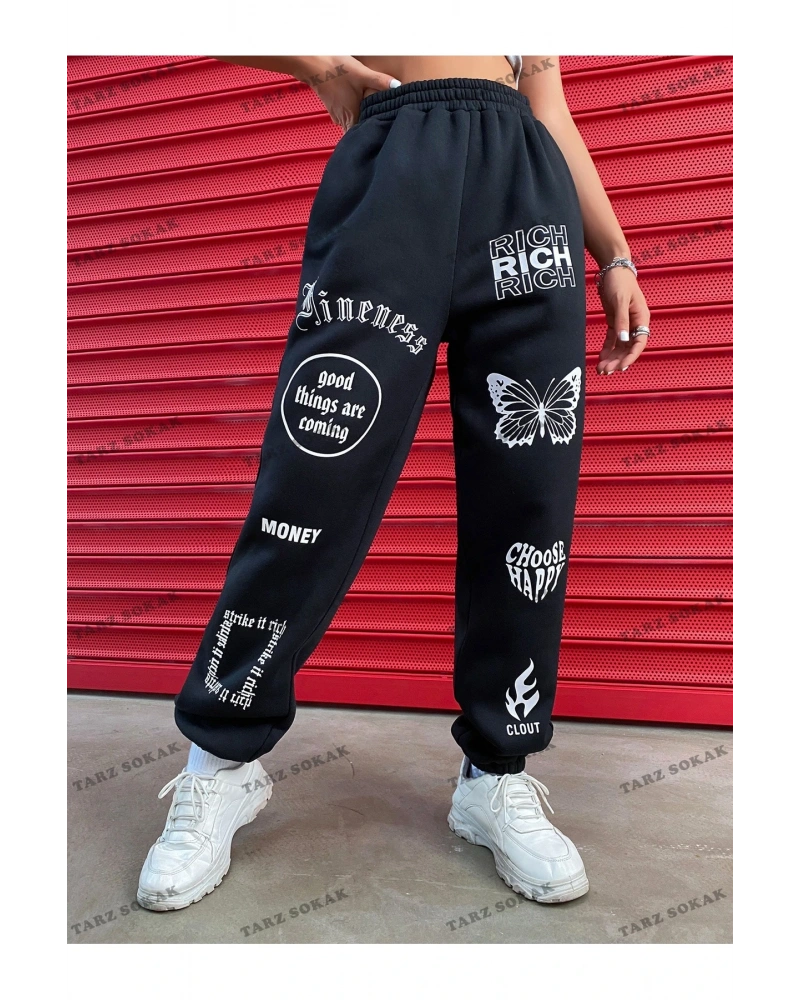 Lion Company Kadın Siyah Paçası Lastikli Eşofman ESF01