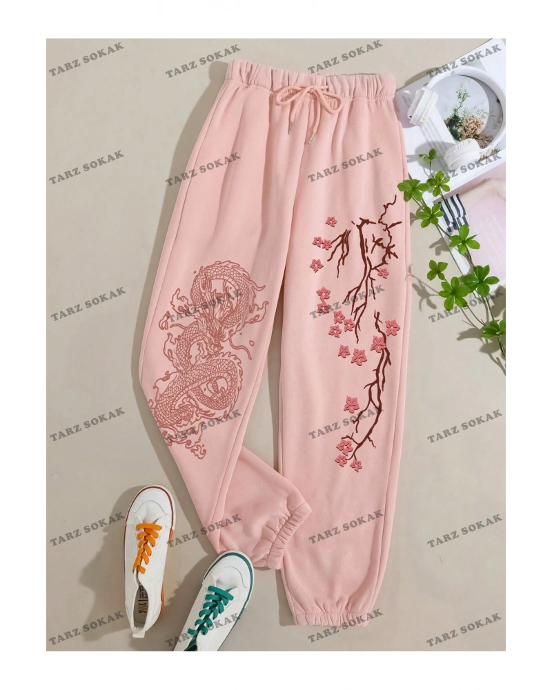 Expression Print Drawstring Waist Eşofman Altı