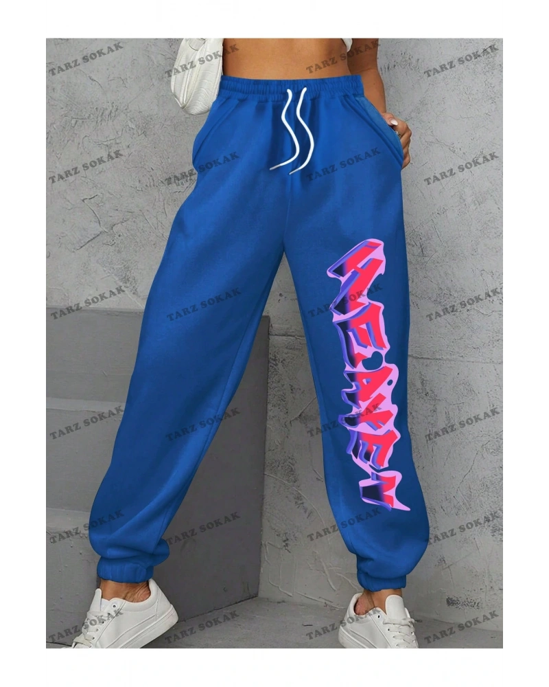 Expression Print Drawstring Waist Eşofman Altı