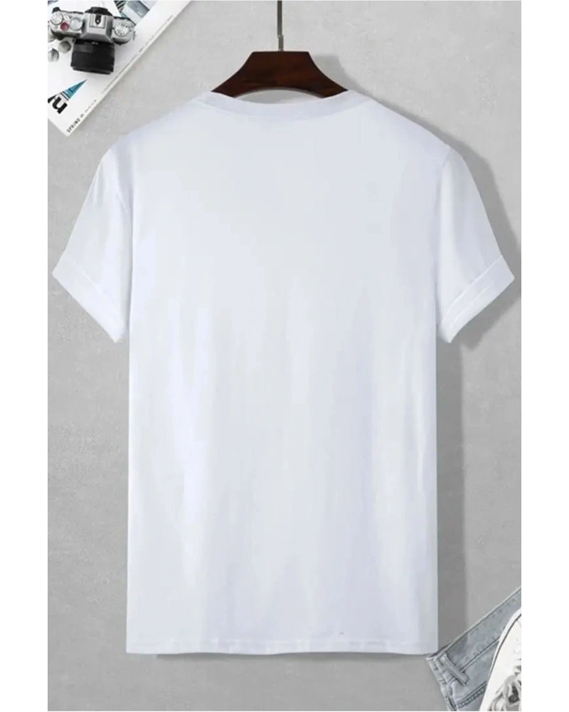 Yasolin----Kadın Beyaz Önü Güneş Baskılı Bisiklet Yaka Oversize Pamuklu T-shirt