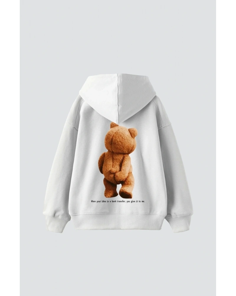 Bear Sırt Baskılı Oversize Unisex Beyaz