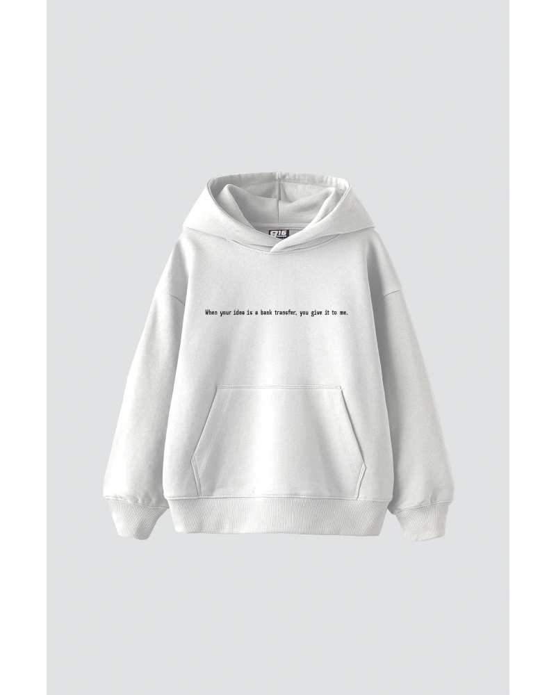 YQYQ----Oversize Araba Nissan Tasarım Baskılı Kapüşonlu Sweatshirt Hoodie Beyaz