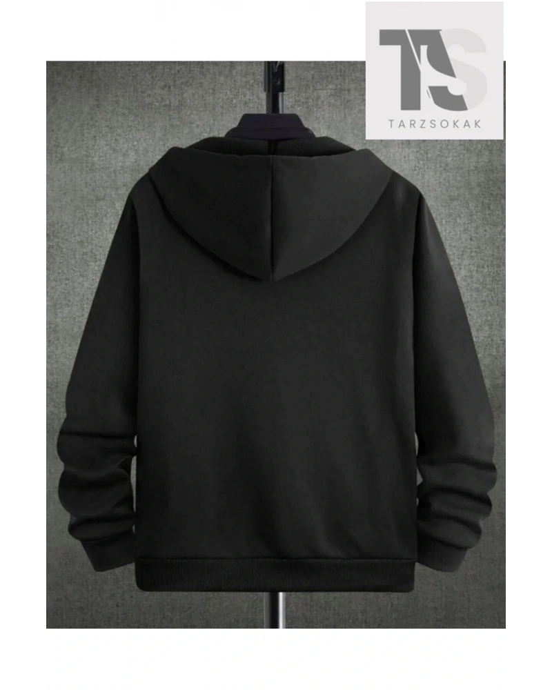 Siyah Never Shutup Racer Kalın Şardonlu Unisex Kapşonlu Hırka