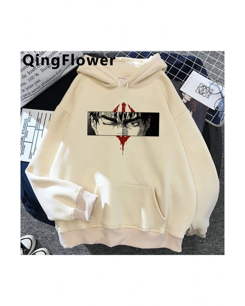 Berserk Anime Grafik Hoodie Model 72 12255 Beyaz