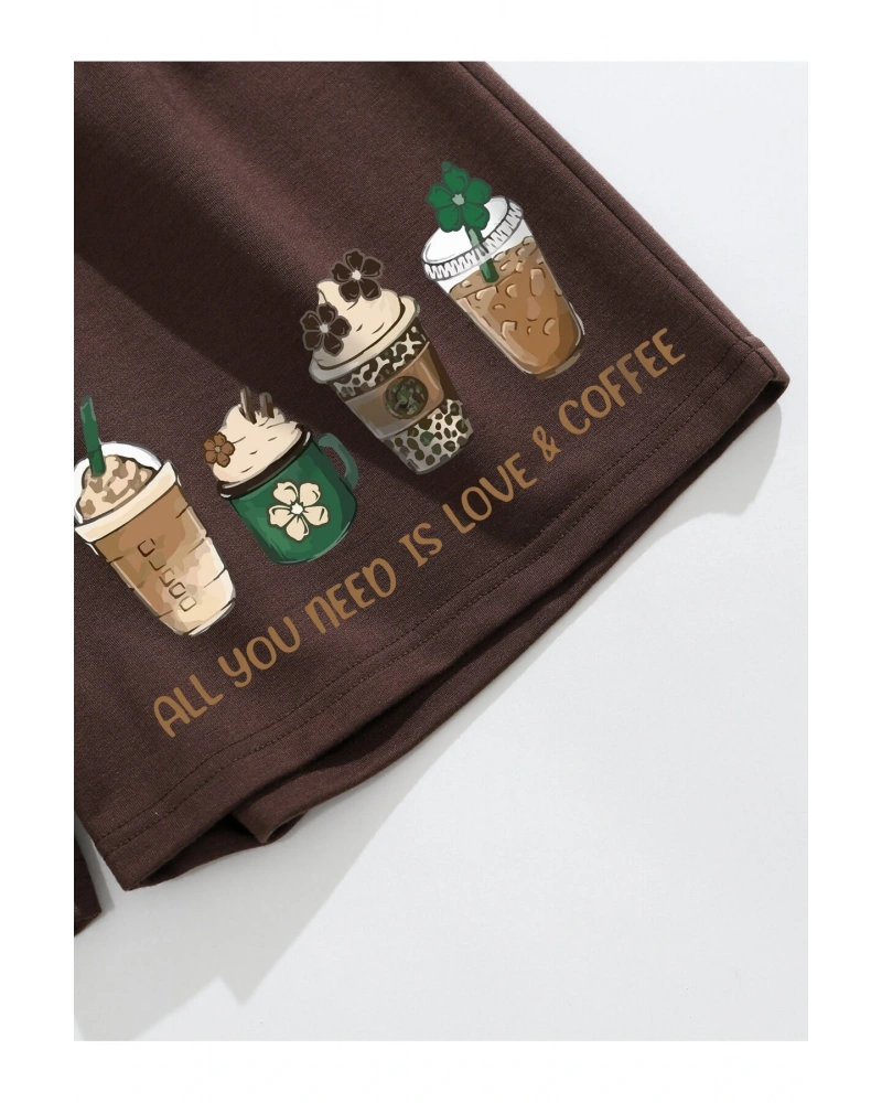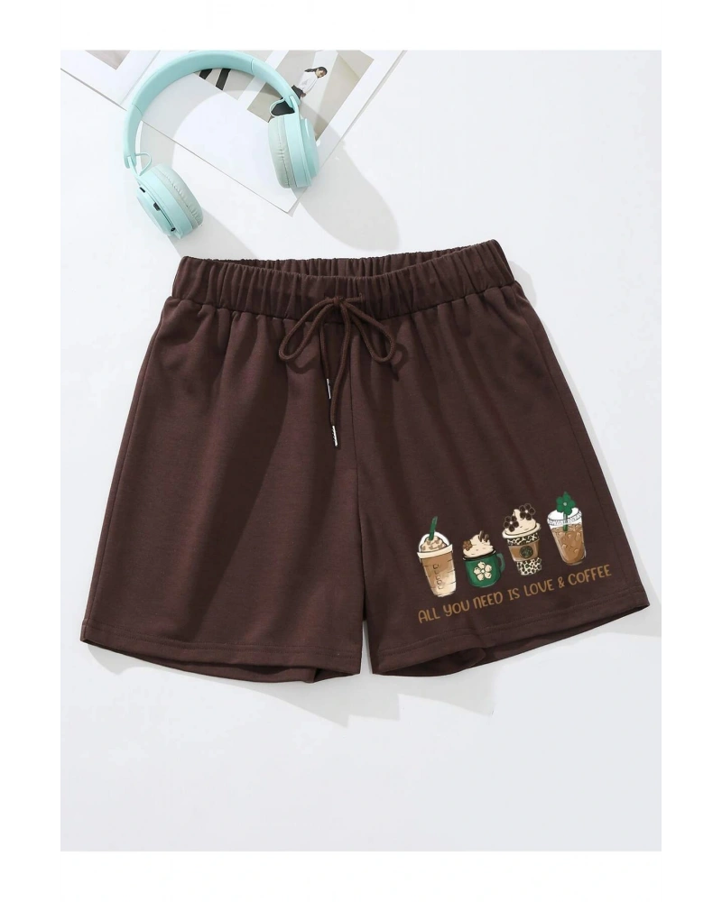 Beverage & Slogan Graphic Drawstring Waist Şort
