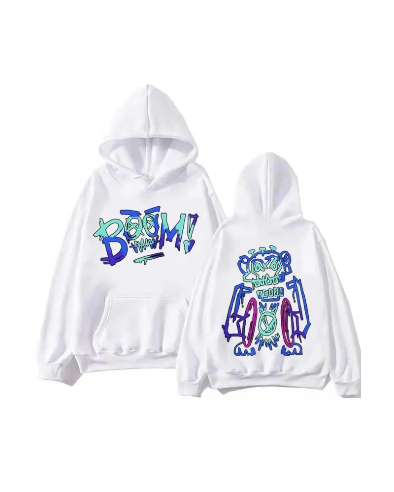 Manfinity EMRG Cartoon And Slogan Graphic Sweatshirt Beyaz