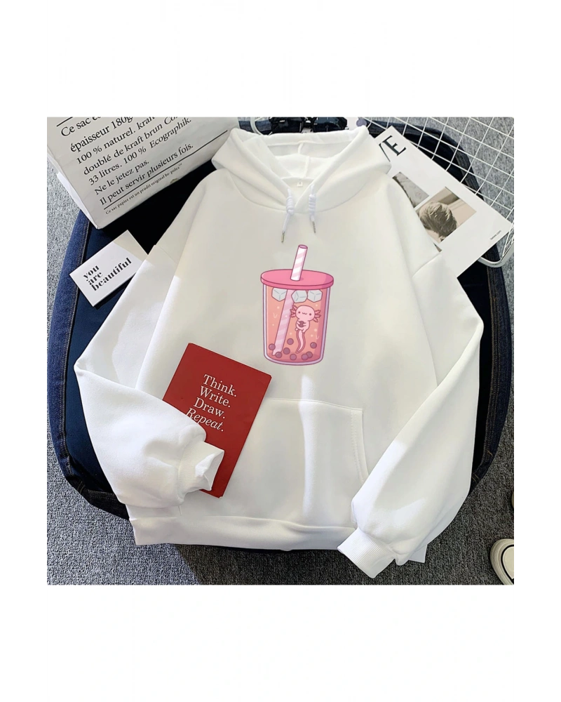 Beyaz Axolotl Yeme Kabarcık Boba Süt Çay Hoodies Kawaii Karikatür Kız uPola