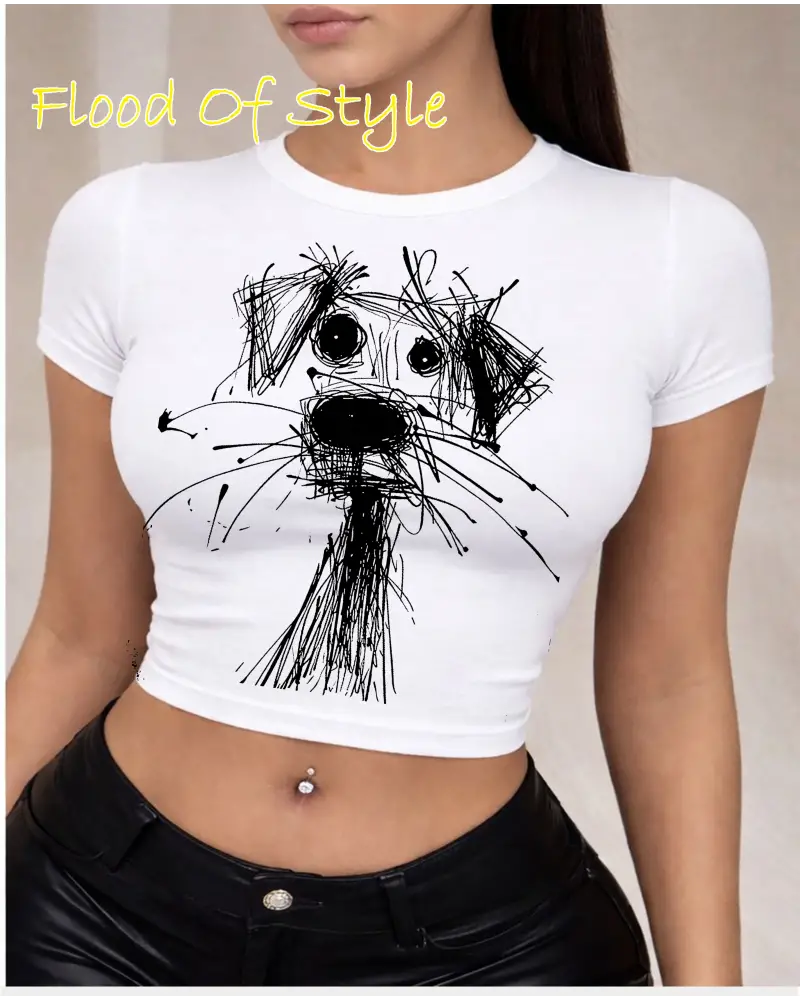 Beyaz Babby Tee çizim köpek Özel tasarım