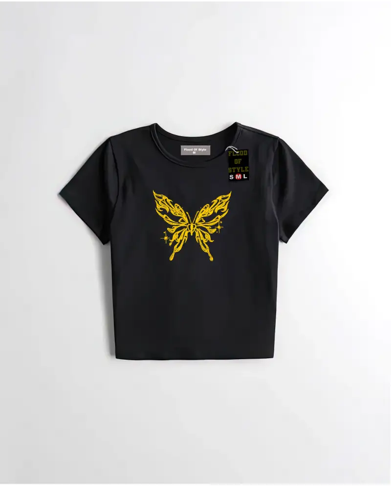 Beyaz Babby Tee kelebek sarı Özel tasarım