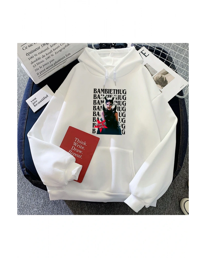 Beyaz Bambie ThugHoodies Hoodies dera Mujer rahatuzun kollu kıya
