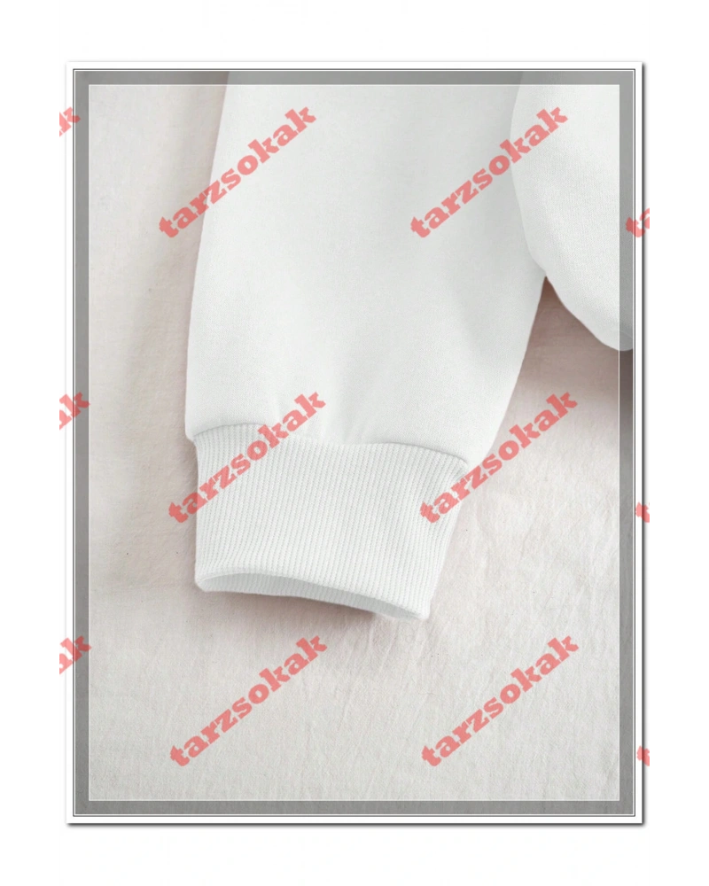 Beyaz Kapşonlu Handsome Detaylı ikili TAKIM