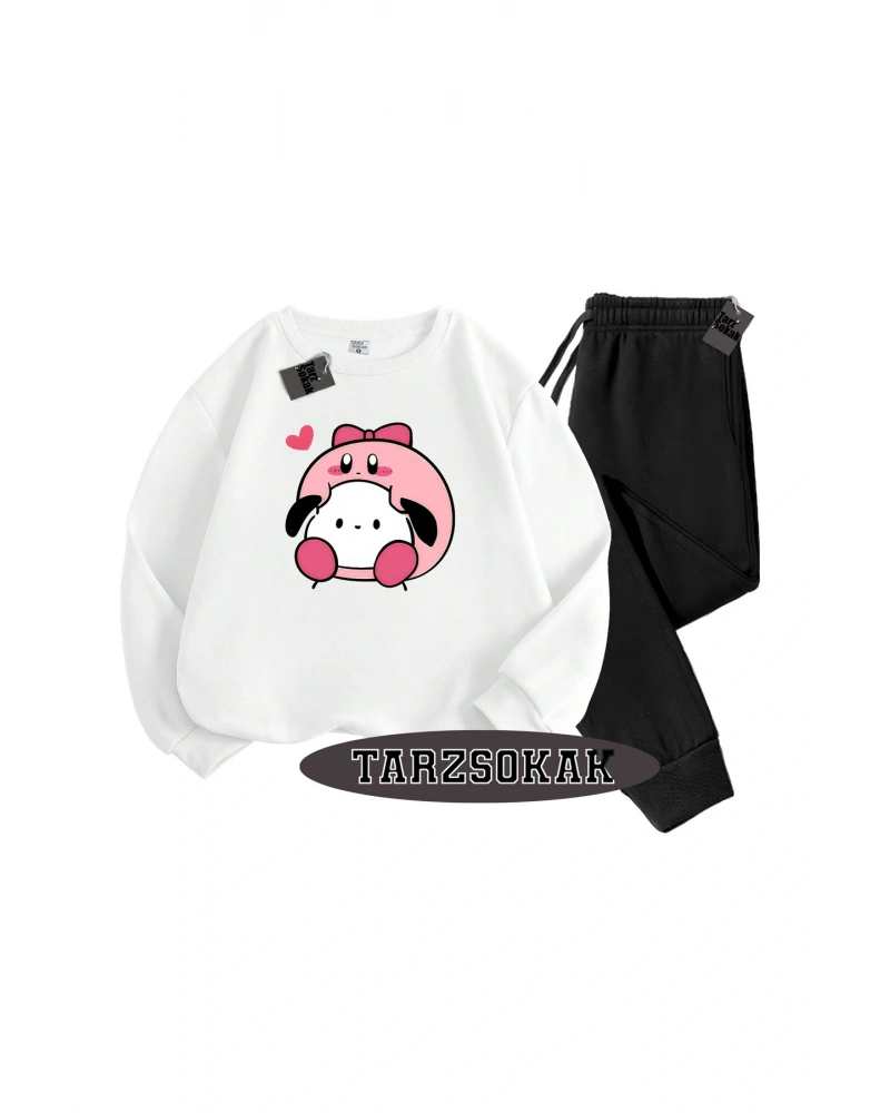Beyaz Kapşonlu Handsome Detaylı ikili TAKIM