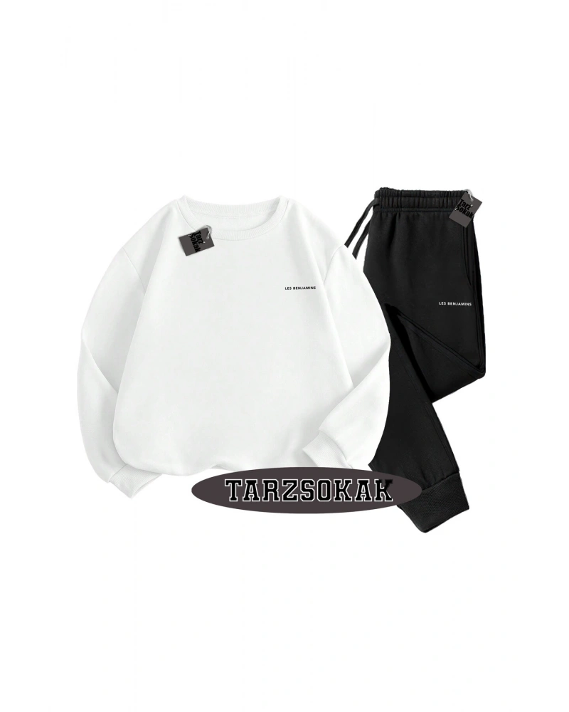 Beyaz Kapşonlu Handsome Detaylı ikili TAKIM