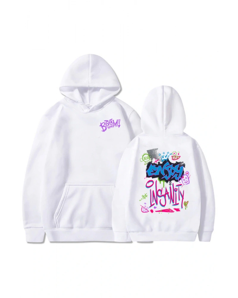 Manfinity EMRG Cartoon And Slogan Graphic Sweatshirt Beyaz