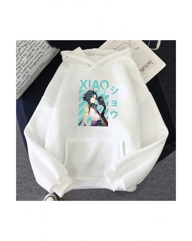 Beyaz Genshin darbe Xiao serinsıcak oyun Hoodies kanguru artı boyutu tişör