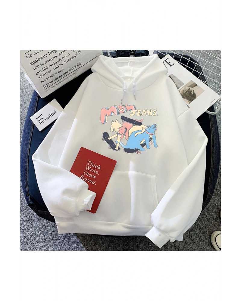 Manfinity EMRG Cartoon And Slogan Graphic Sweatshirt Beyaz