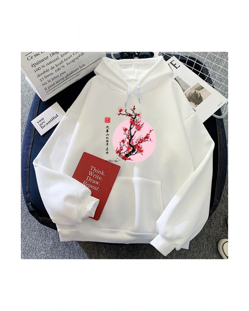 Beyaz Japon çiçeği SakuraHoodies rahat u
